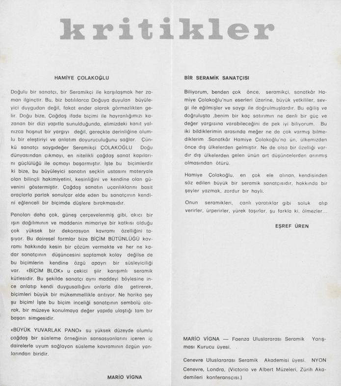 Doğanın Dokusu 1: Hamiye Çolakoğlu'nun Seramik Segisi, 20 Eylül - 11 Ekim 1974, Alman Kültür Merkezi, Ankara